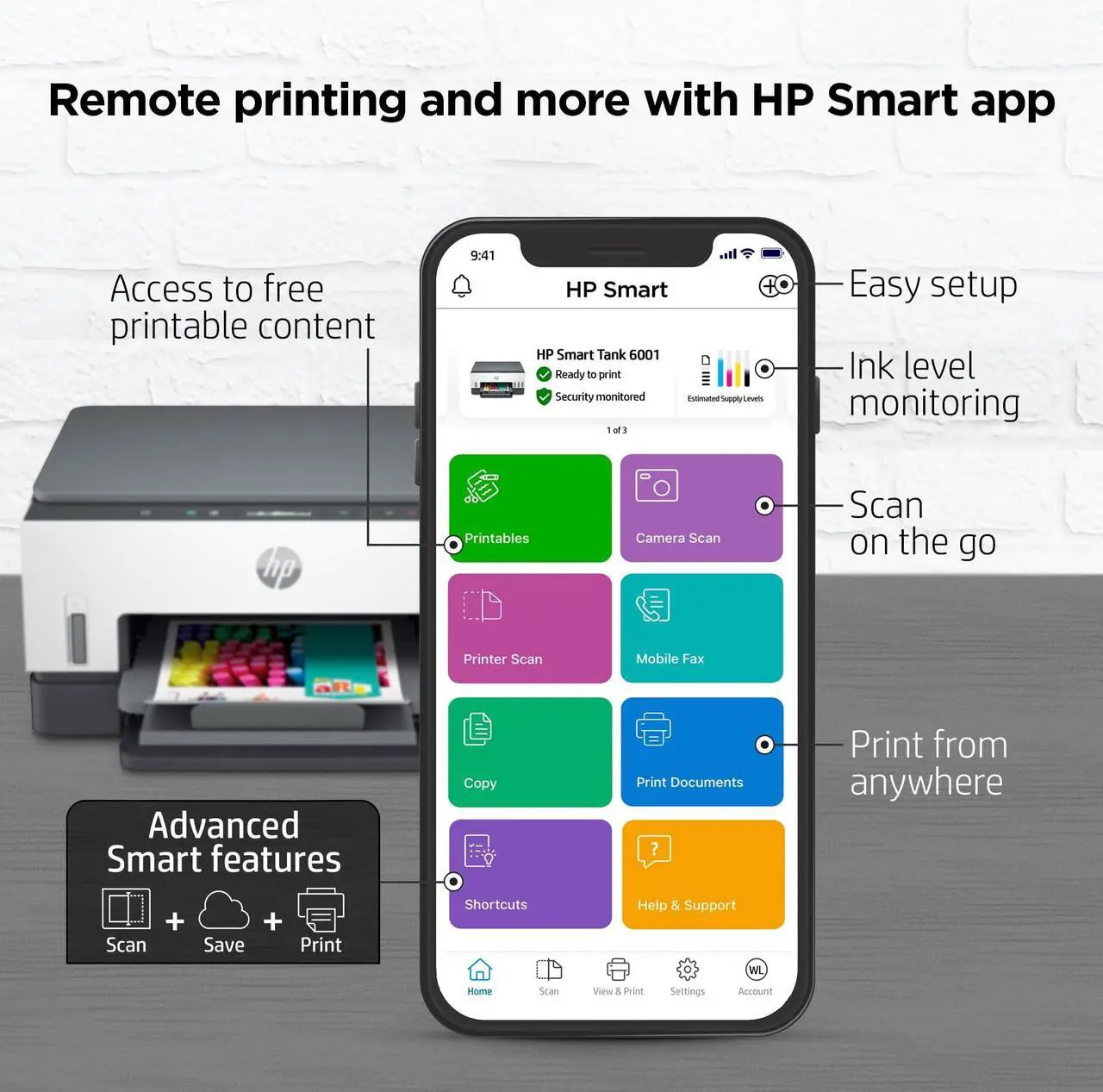 HP Smart Tank 6001 All-in-One InkJet Printer, Color Mobile Print, Scan, Copy