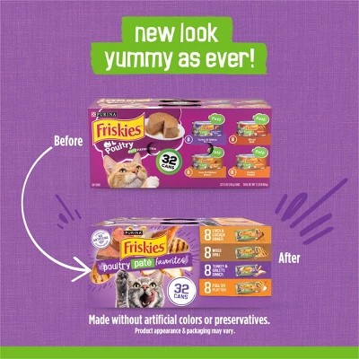 Purina Friskies Paté with Liver and Turkey Flavor Wet Cat Food Poultry Favorites - 5.5oz/32ct Variety Pack