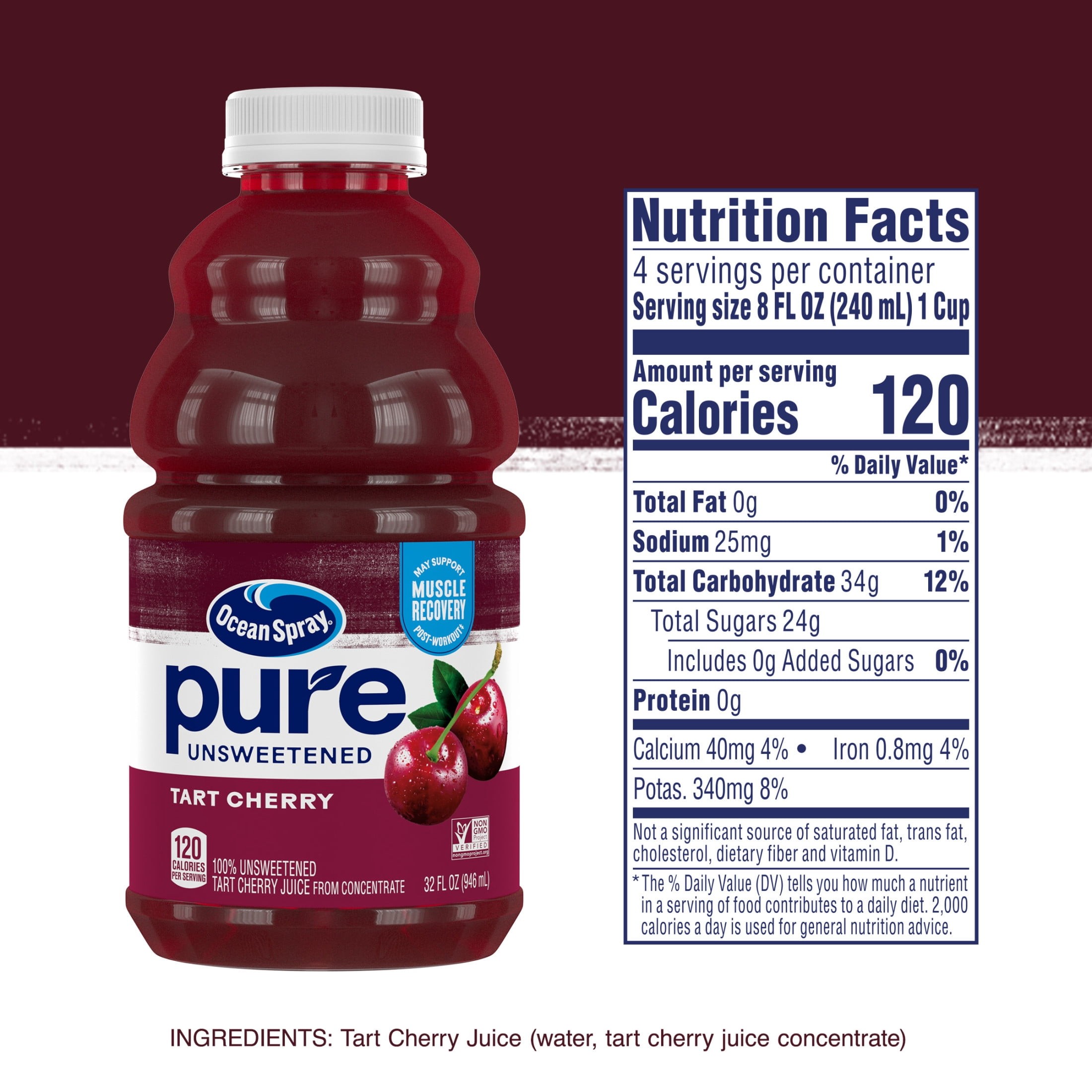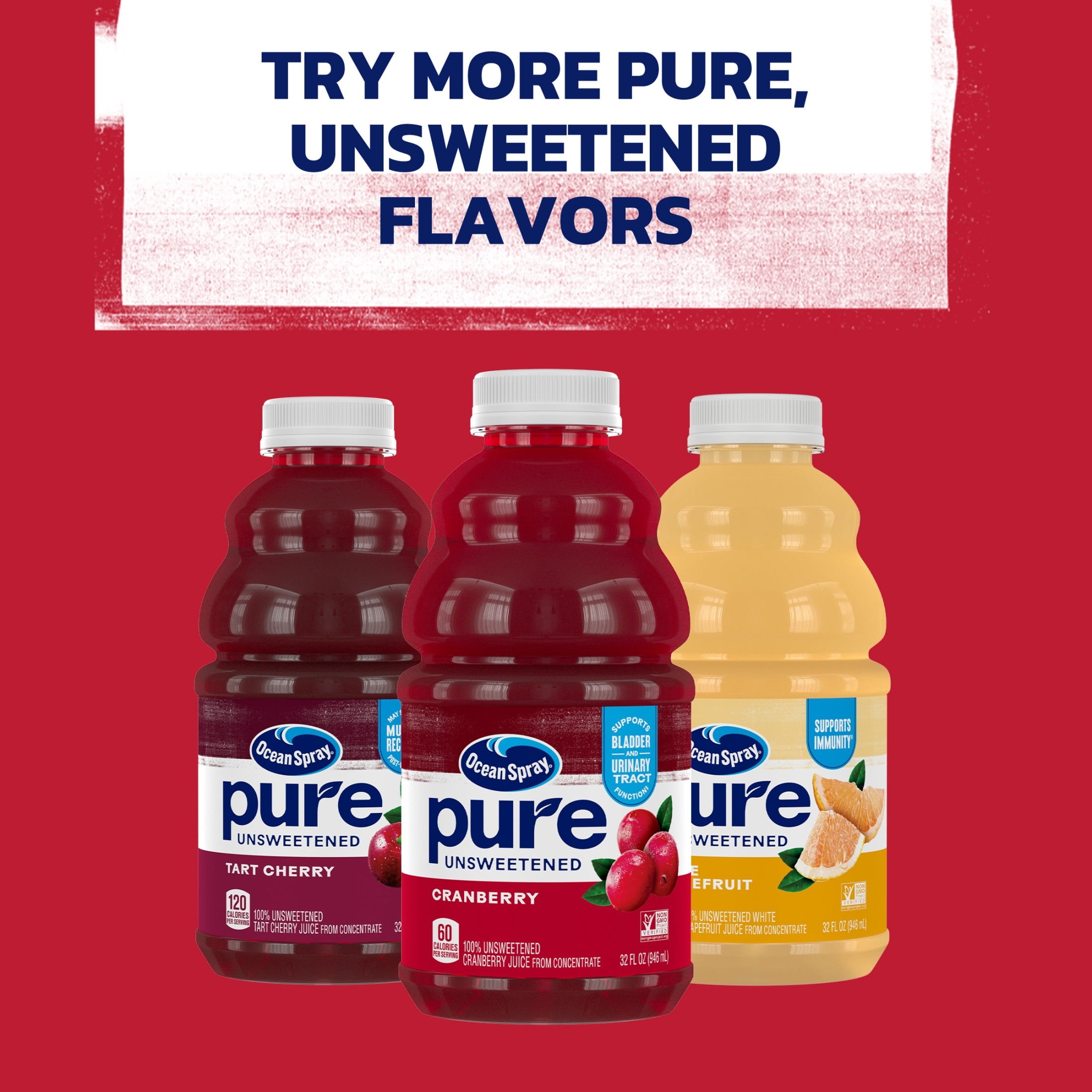 Ocean Spray® Pure Unsweetened Cranberry, 100% Cranberry Juice, 32 fl oz Bottle