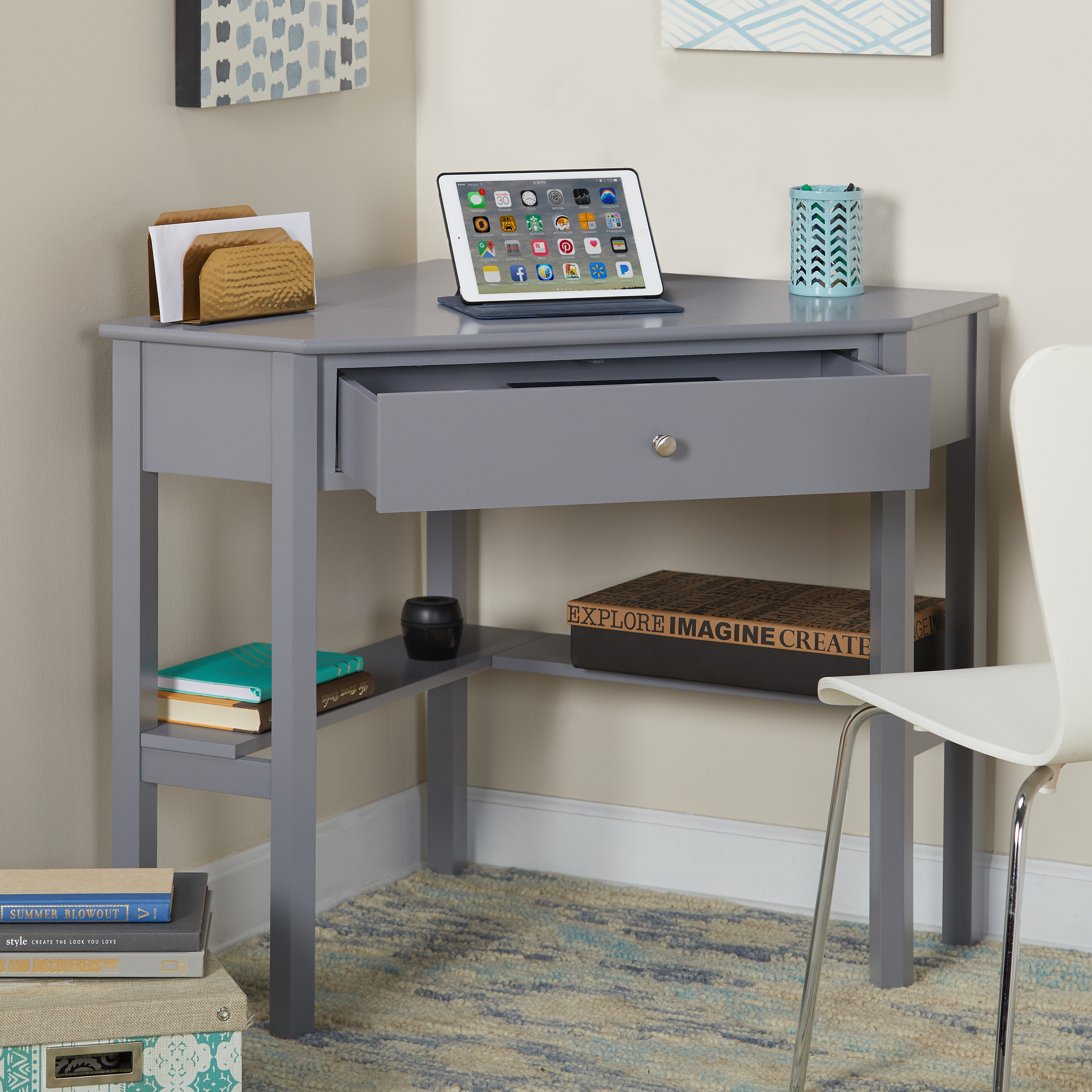 Ellen Corner Writing Desk, Antique Gray