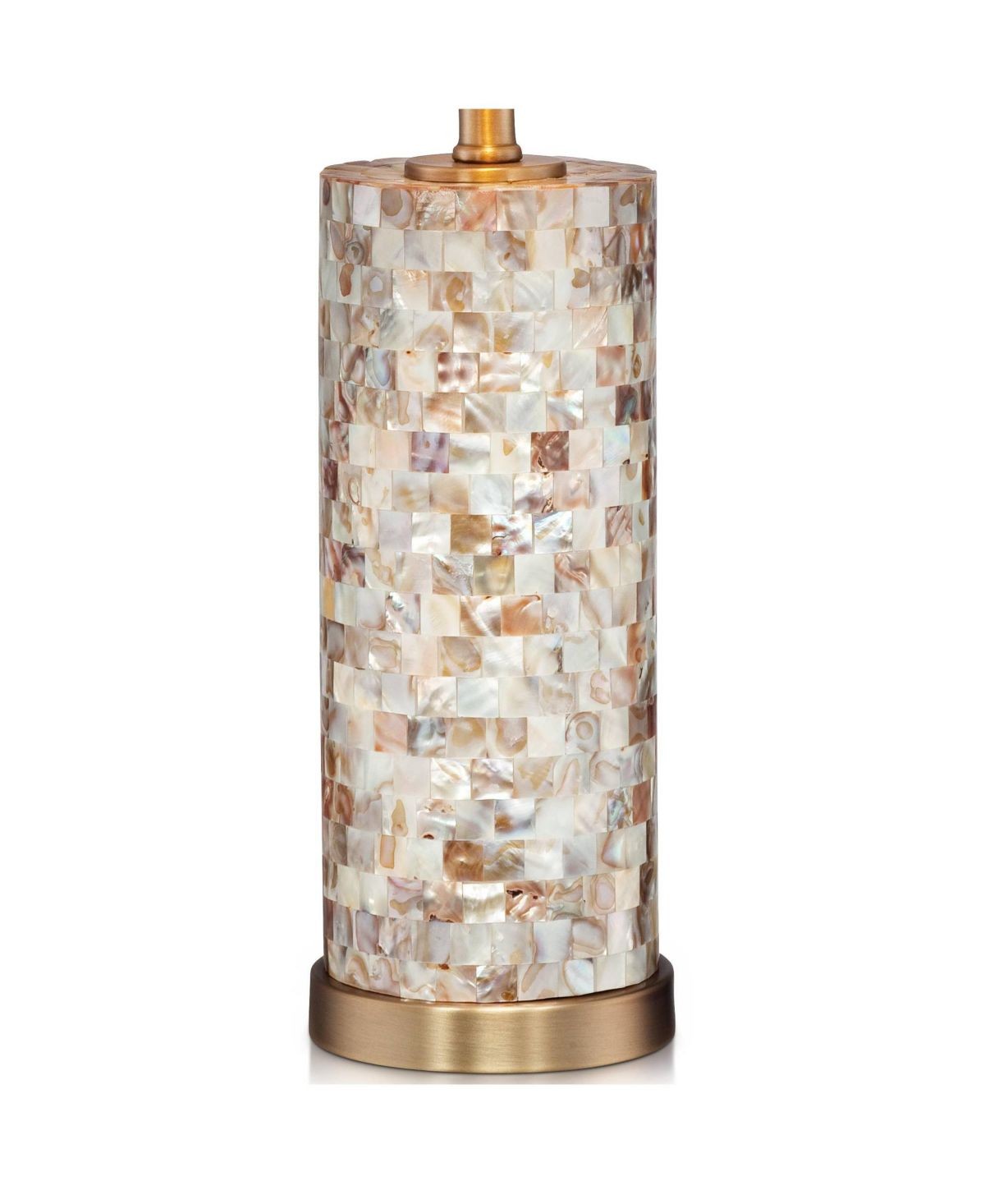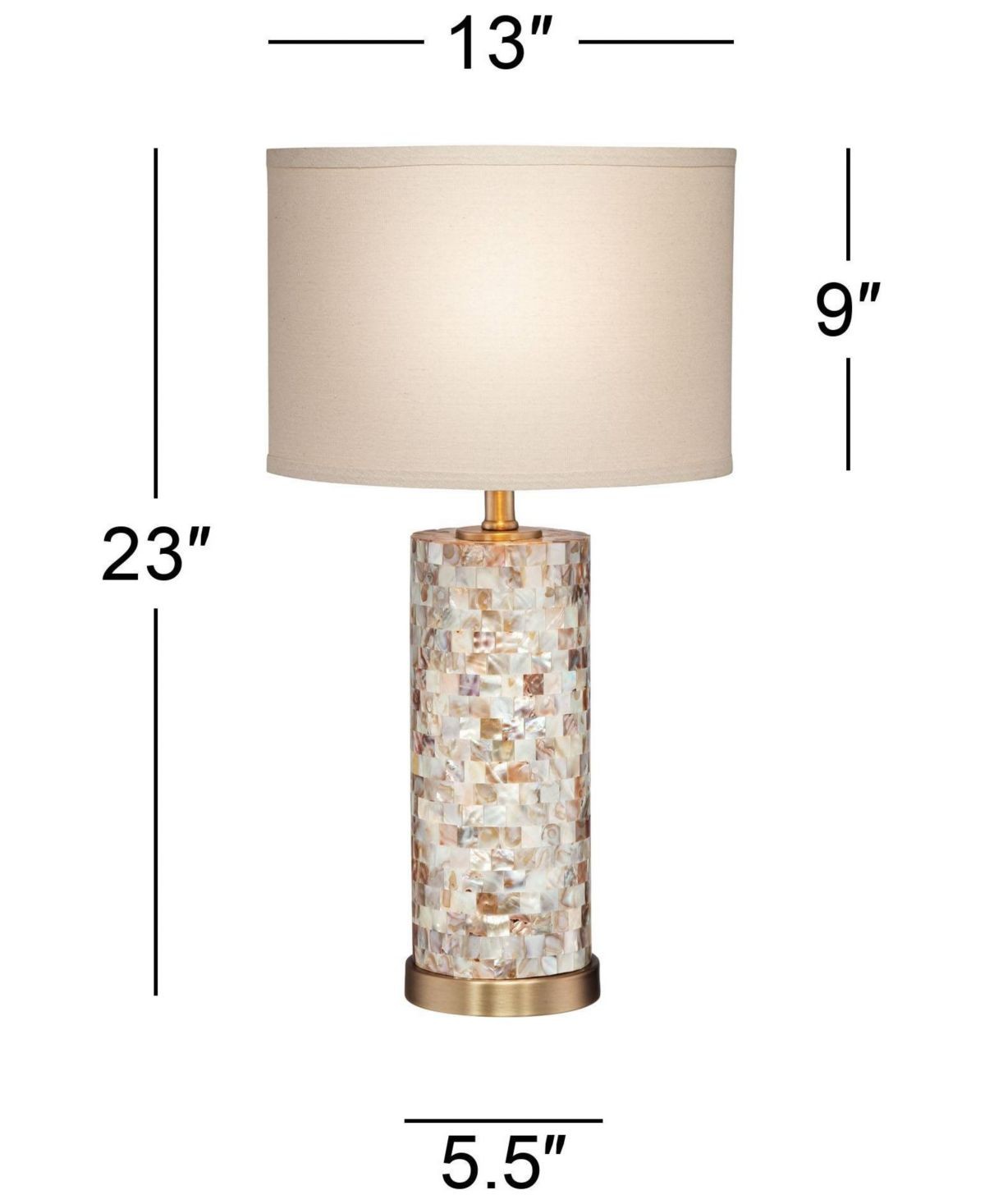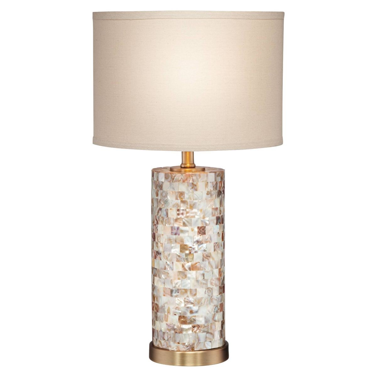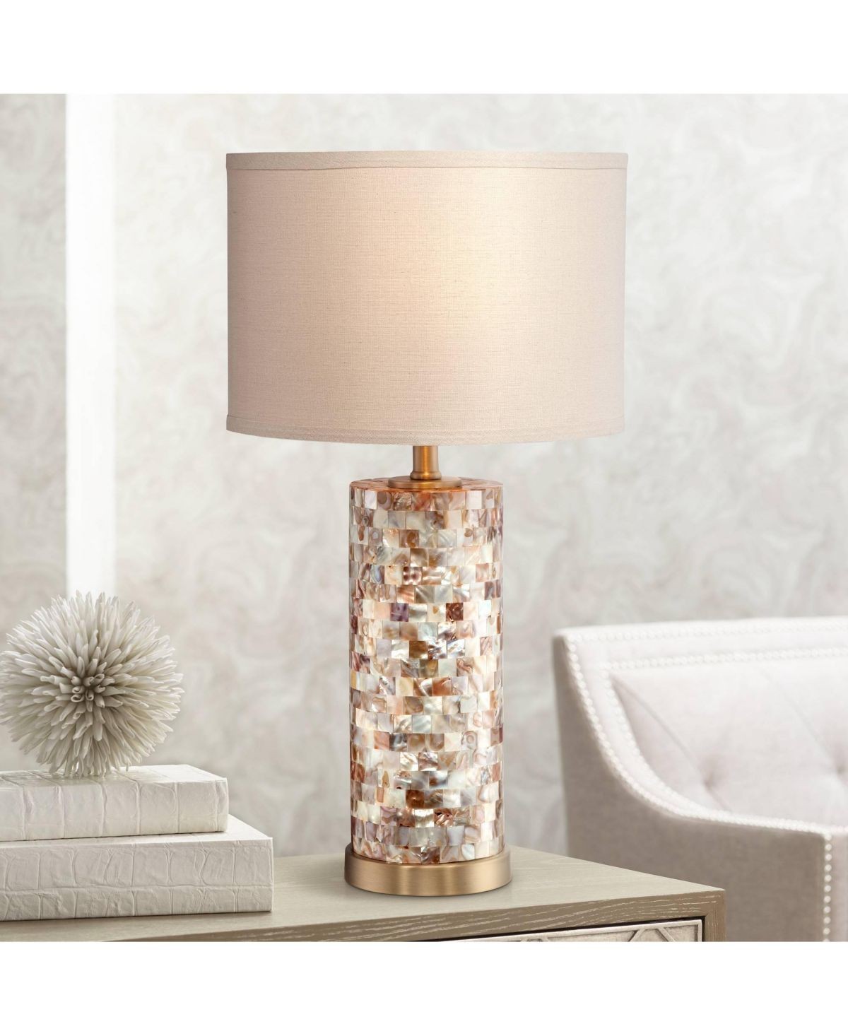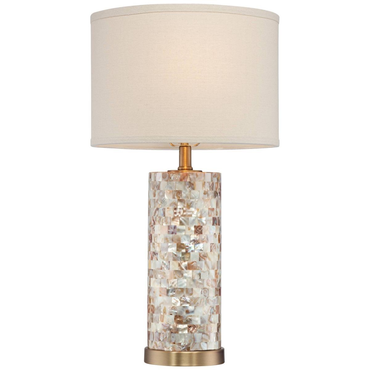 23" High Mother of Pearl Tile Cylinder Margaret Coastal Accent Table Lamp with Linen Drum Shade
