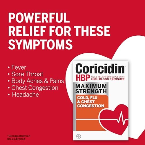 Coricidin HBP, Decongestant-Free Cold Symptom Relief for People with High Blood Pressure, Maximum Strength, Flu & Chest Congestion Liquid Gels, 24 Count