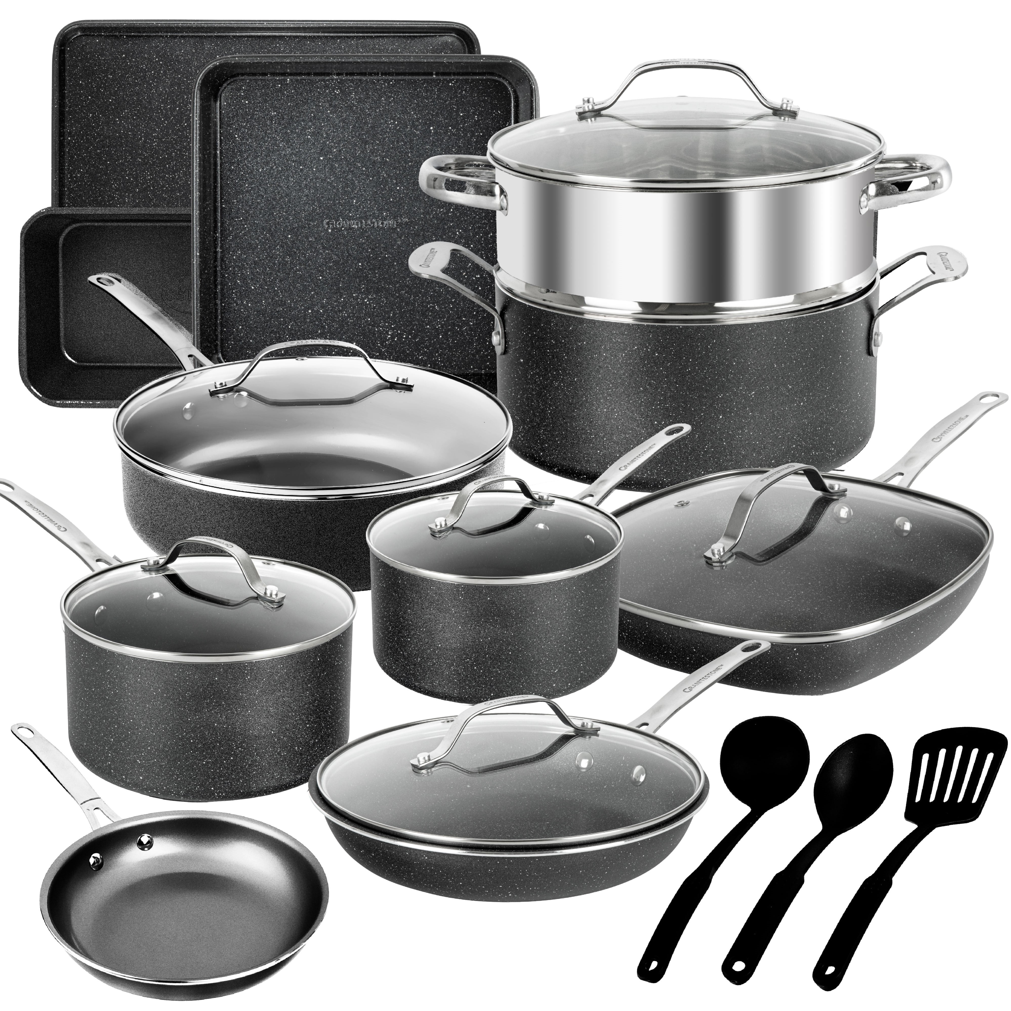 Granitestone Nonstick Pots and Pans 20 Pcs Set Kitchen Cookware Set Bakeware Cooking Frying Skillet Sauce Pan Black