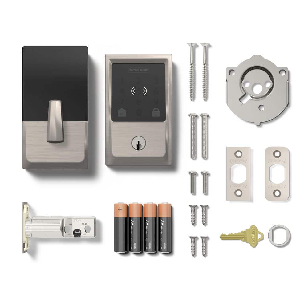 Schlage Century Satin Nickel Electronic Encode Plus Smart WiFi Deadbolt with Alarm BE499WB V CEN 619