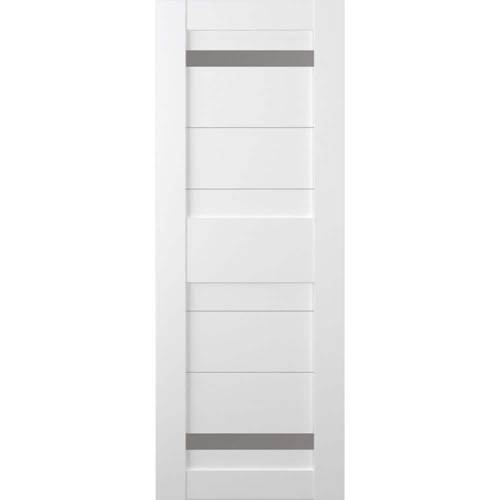 Imma 28 in. x 80 in. No Bore Solid Core 2-Lite Frosted Glass Bianco Noble Finished Wood Composite Interior Door Slab