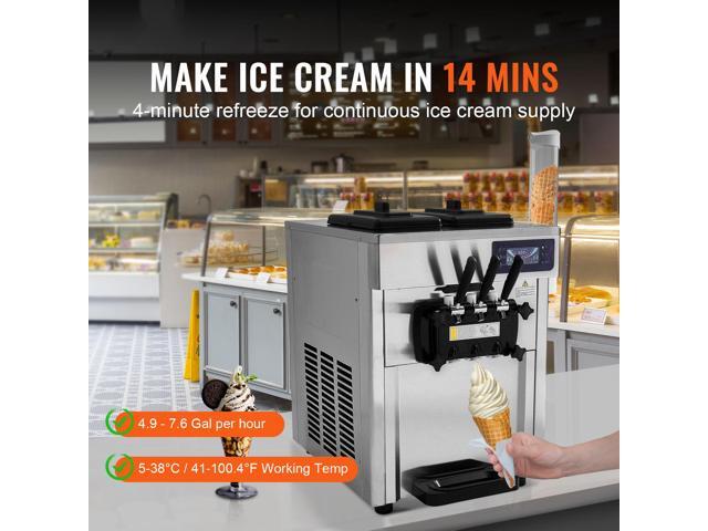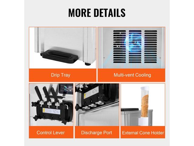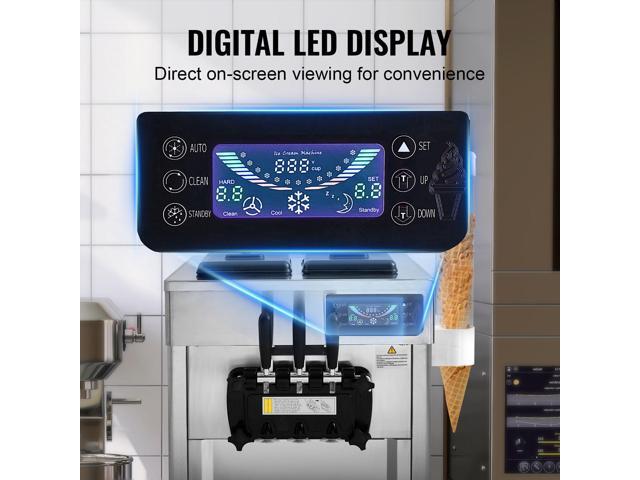 VEVOR Commercial Ice Cream Machine, 18-28 L/H Yield, 1850W 3-Flavor Countertop Soft Serve Ice Cream Maker, 2 x 5.5L Stainless Steel Cylinder, LED...