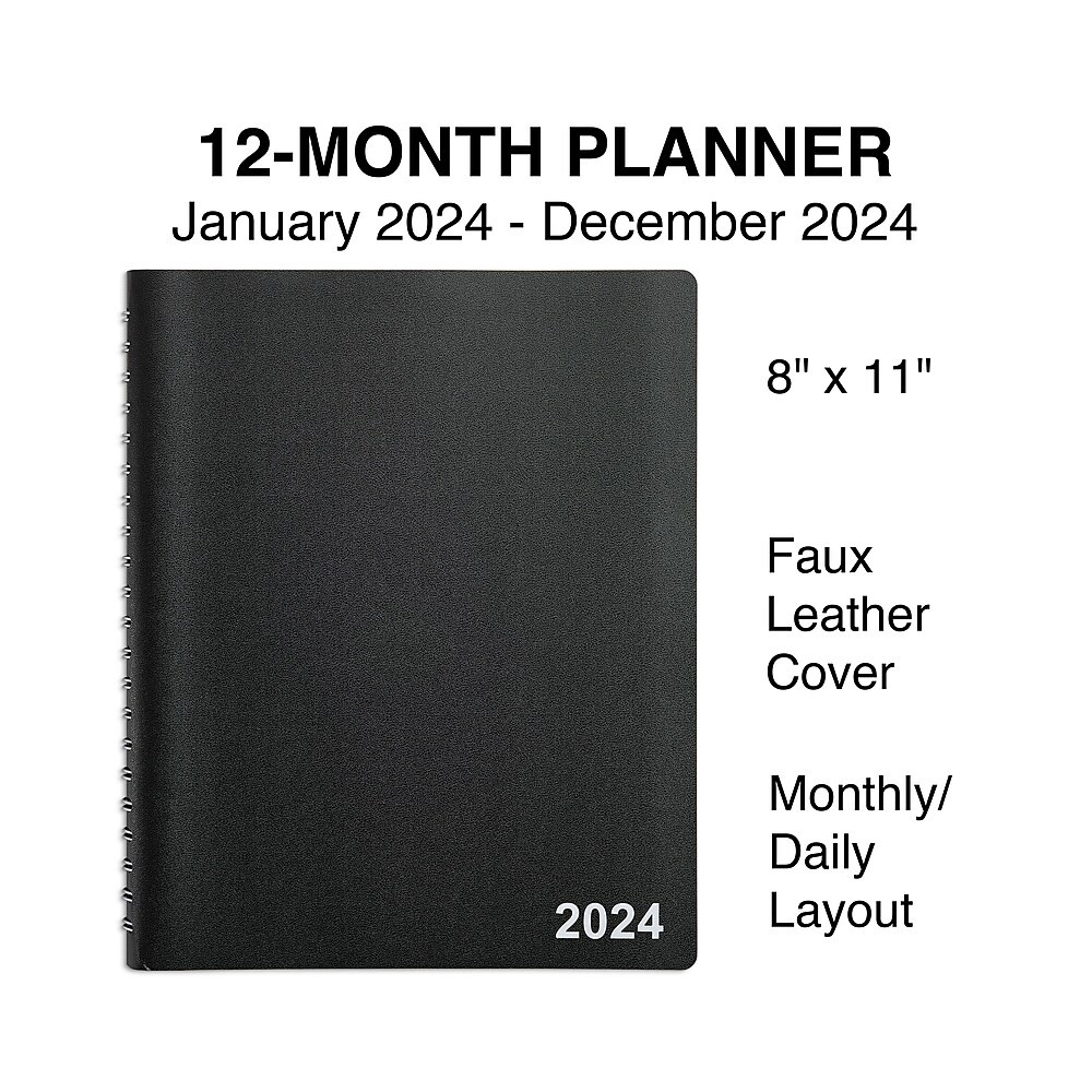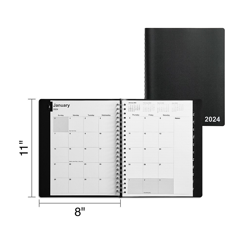 2024 Staples 8" x 11" Daily Appointment Book, Black (ST58453-24)