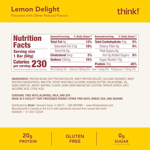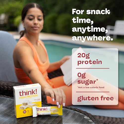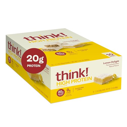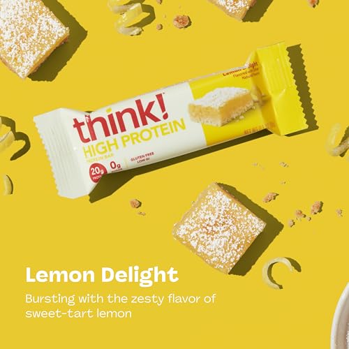 think! Protein Bars, High Protein Snacks, Gluten Free, Kosher Friendly, Lemon Delight, Nutrition Bars, 2.1 Oz per Bar, 10 Count (Packaging May Vary)
