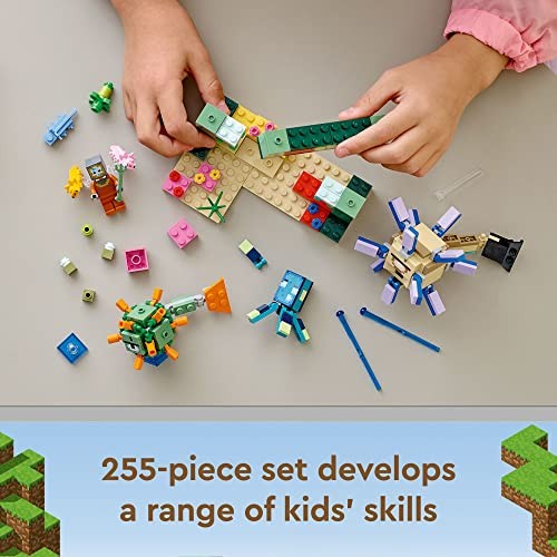 LEGO Minecraft The Guardian Battle Toy Building Set 21180 Underwater Ocean Theme with Minecraft Mobs Figures, Build a Coral Reef, Find Hidden Treasure, Birthday Gifts Idea for Kids, Boys, Girls Age 8+