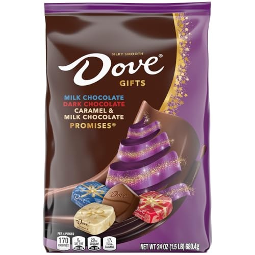 DOVE PROMISES Milk, Dark & Caramel Christmas Candy, Assorted Chocolate Candy Variety Pack, Stocking Stuffers - 24 oz Bag