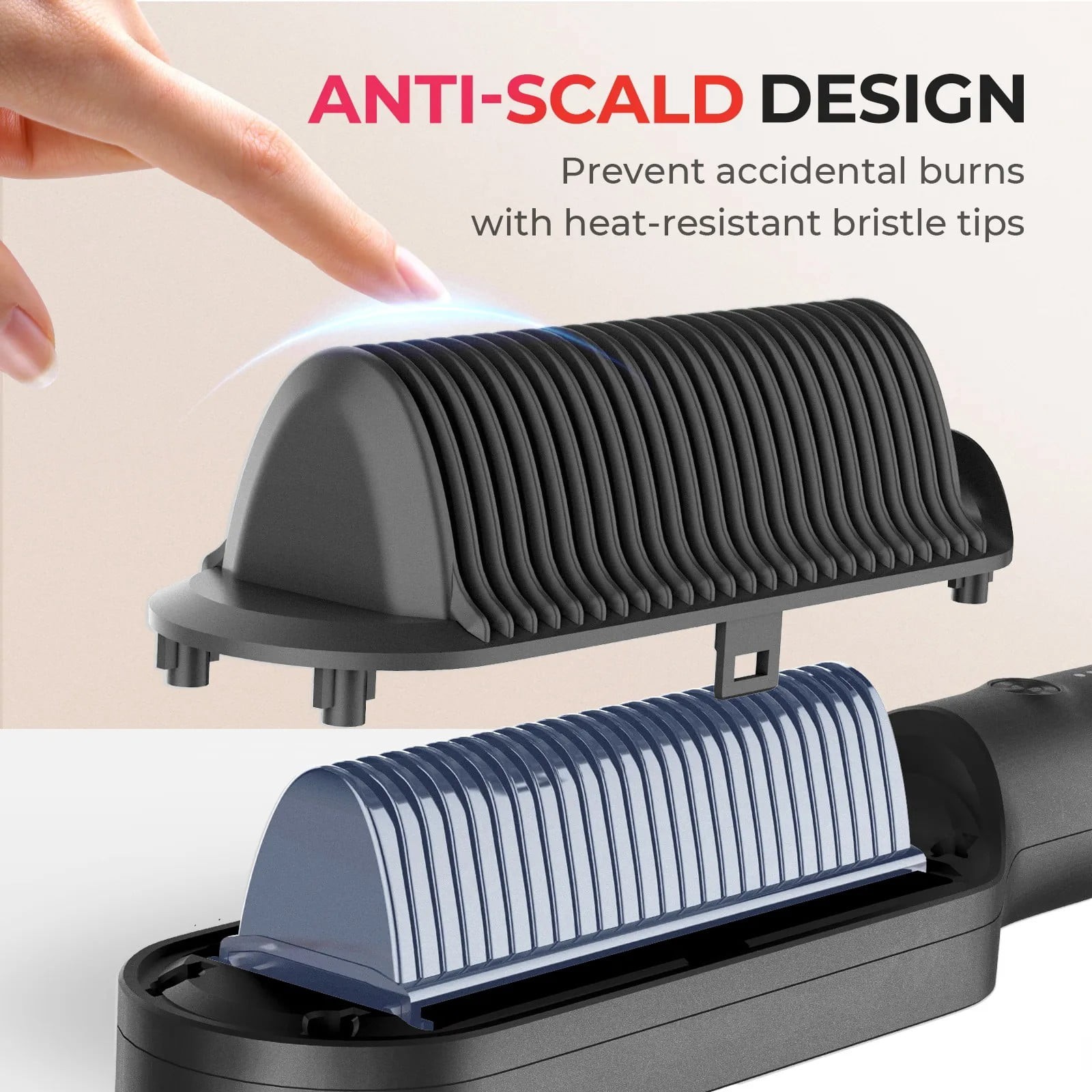 TYMO RING Hair Straightener Brush, Anti-Scald Ceramic Heated Straightening Flat Iron Comb, Frizz Control & Smooth Shine, Dual Voltage, Black, with Travel Bag