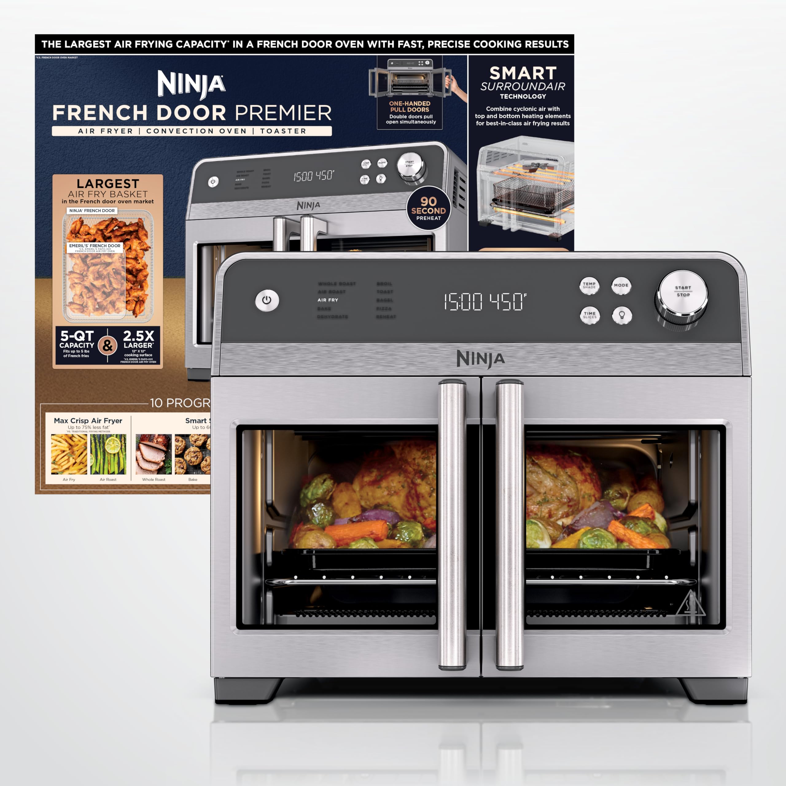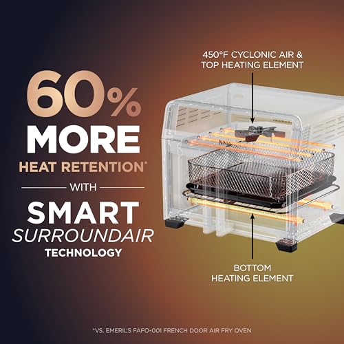 Ninja | French Door Premier Air fry Oven | 10-in-1 functions | 20.3-qt capacity | 5-qt Air Fry Basket, Sheet Pan, Wire Rack, Broil Rack | PFAS-free Cooking Surface, Dishwasher-Safe Accessories | FO101