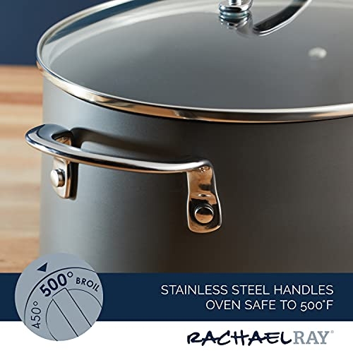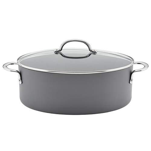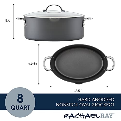 Rachael Ray 80090 Professional Hard Anodized Nonstick Cookware Oval Pasta Pot/Braiser, 8 Quart - Gray