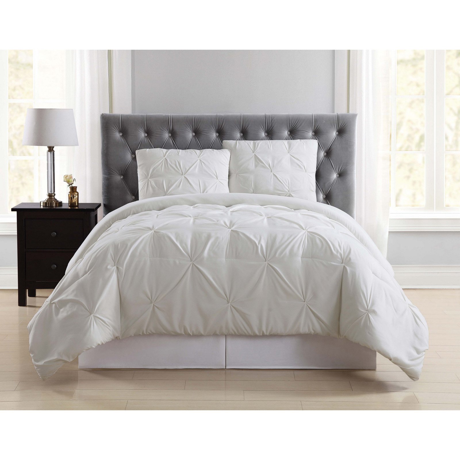 Truly Soft Pleated Light Blue Full Queen Microfiber Comforter Set