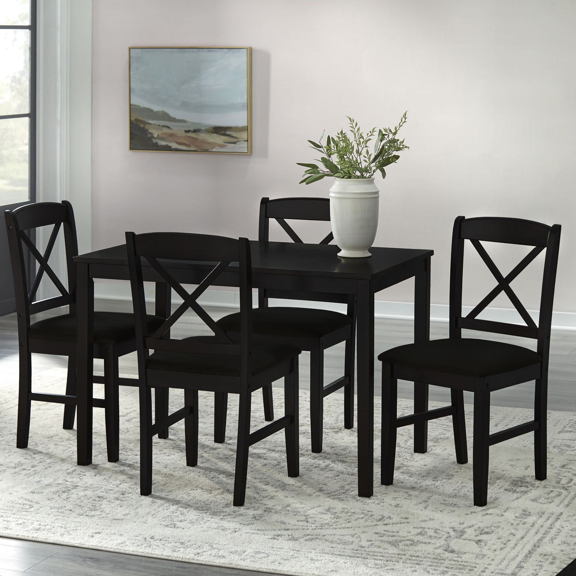 TMS Mason 5-Piece Cross Back Indoor Dining Set, Includes Table and Chairs, Black