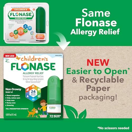 Flonase Children’s Allergy Relief Nasal Spray, 24-Hour Non-Drowsy Multi-Symptom Relief – 72 Sprays